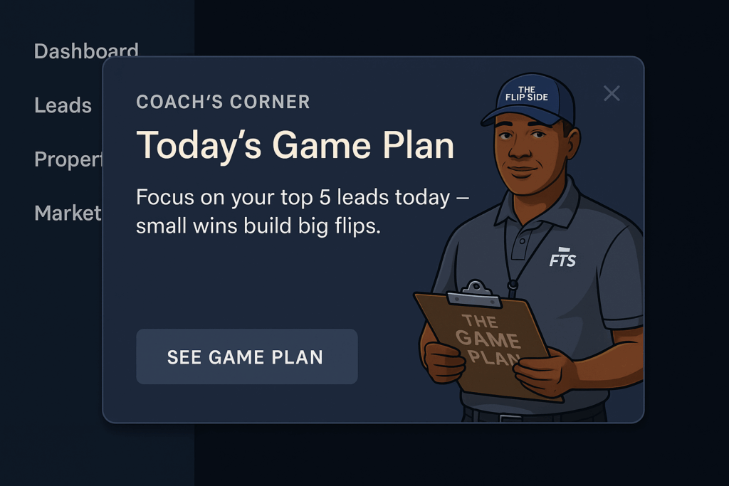 Flip The Script’s AI Coach that mentors, gives strategy, and your guide to help you close more deals and win on every play.